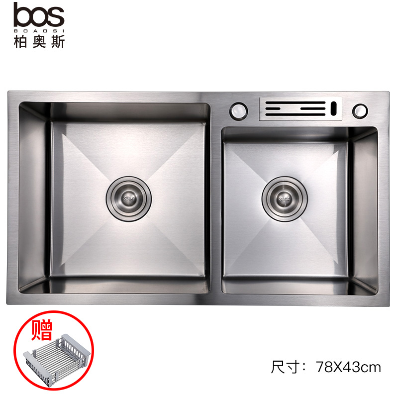 商品名称:台上手工双盆带滤水篮/刀架(SUS304)